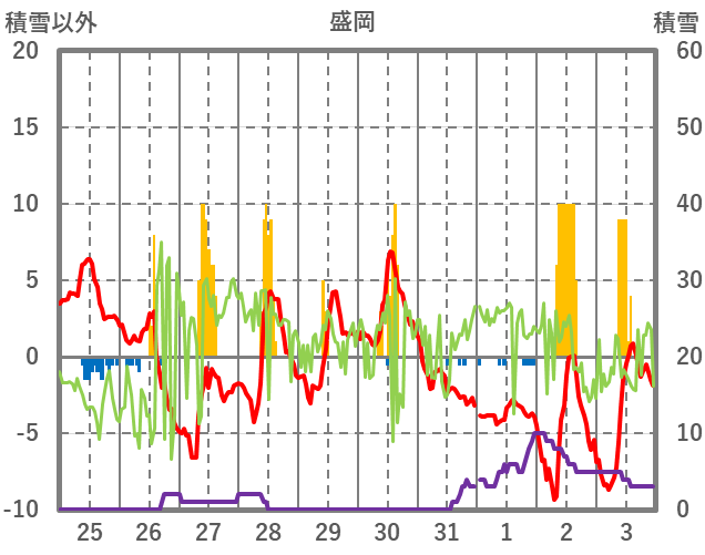 | 日 | 時 | 気温 | 降水 | 風向/風速 | 日照 | 積雪 | 降雪 |