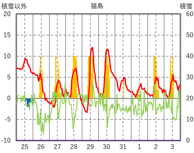 | 日 | 時 | 気温 | 降水 | 風向/風速 | 日照 | 積雪 | 降雪 |