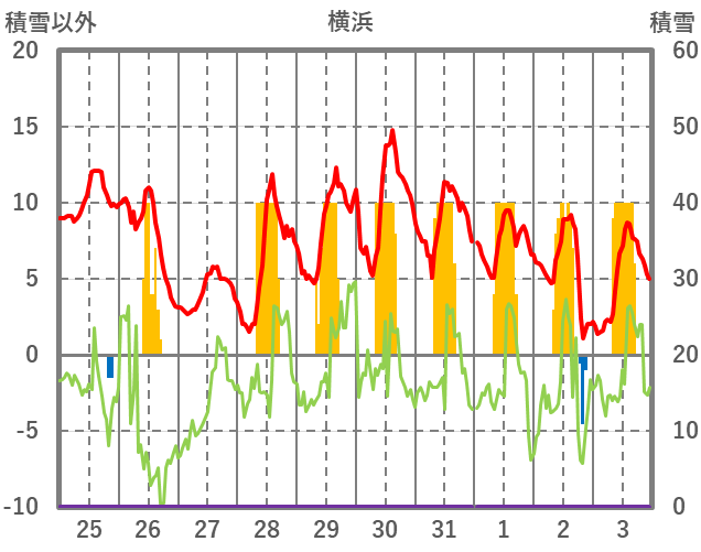| 日 | 時 | 気温 | 降水 | 風向/風速 | 日照 | 積雪 | 降雪 |