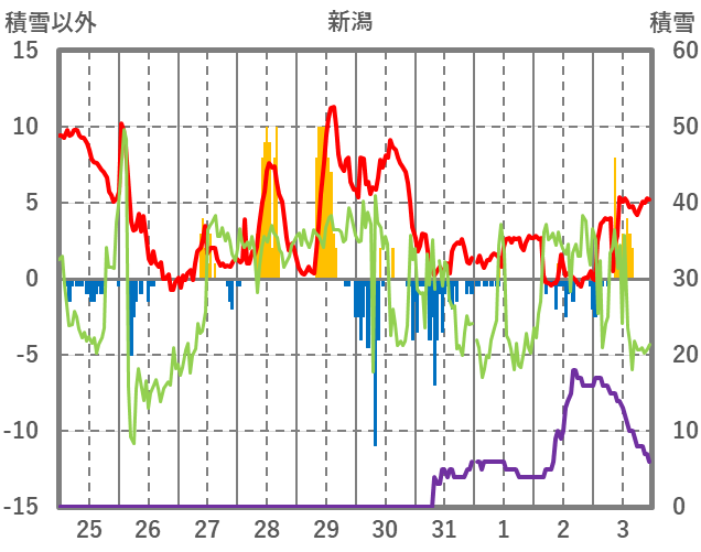 | 日 | 時 | 気温 | 降水 | 風向/風速 | 日照 | 積雪 | 降雪 |
