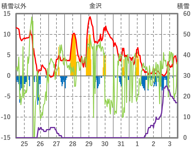 | 日 | 時 | 気温 | 降水 | 風向/風速 | 日照 | 積雪 | 降雪 |