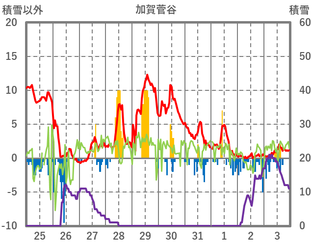 | 日 | 時 | 気温 | 降水 | 風向/風速 | 日照 | 積雪 | 降雪 |
