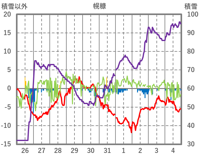 | 日 | 時 | 気温 | 降水 | 風向/風速 | 日照 | 積雪 | 降雪 |
