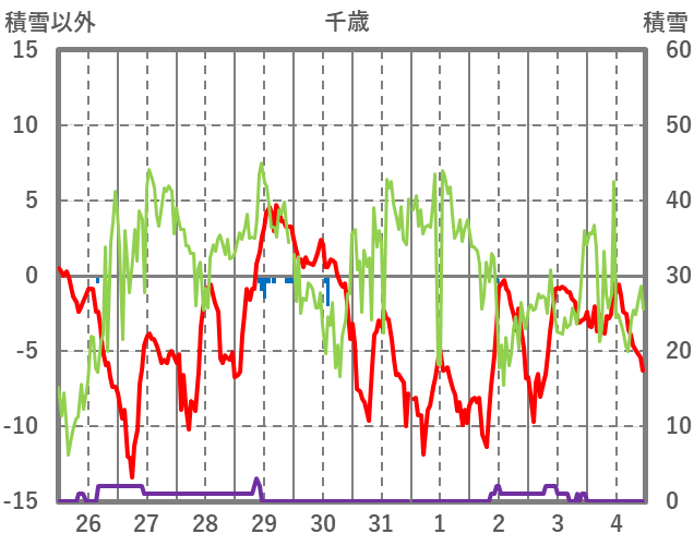 | 日 | 時 | 気温 | 降水 | 風向/風速 | 日照 | 積雪 | 降雪 |
