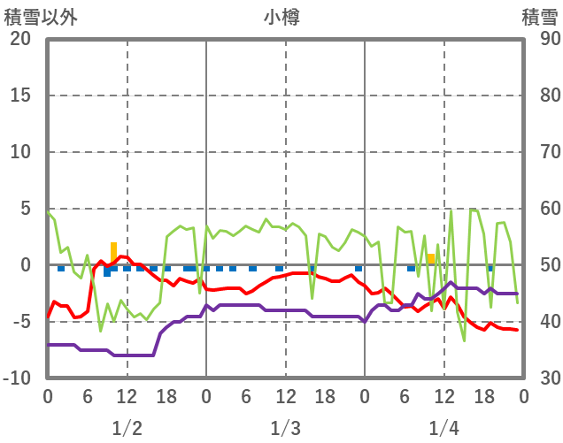 | 日 | 時 | 気温 | 降水 | 風向/風速 | 日照 | 積雪 | 降雪 |