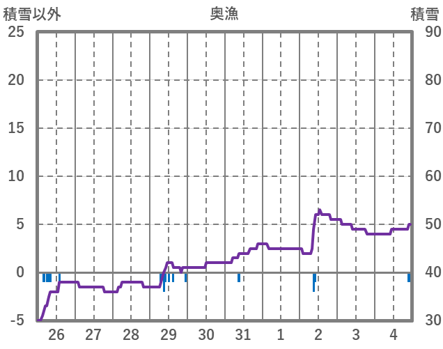 | 日 | 時 | 気温 | 降水 | 風向/風速 | 日照 | 積雪 | 降雪 |