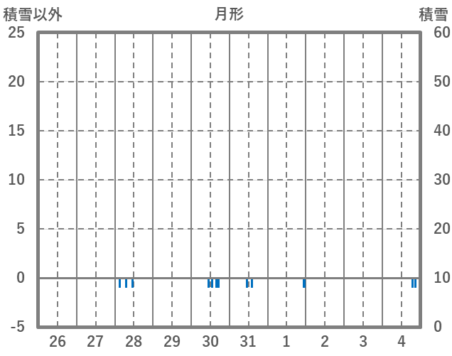 | 日 | 時 | 気温 | 降水 | 風向/風速 | 日照 | 積雪 | 降雪 |