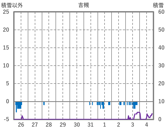 | 日 | 時 | 気温 | 降水 | 風向/風速 | 日照 | 積雪 | 降雪 |