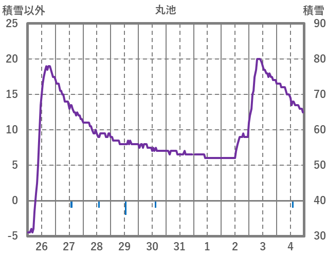 | 日 | 時 | 気温 | 降水 | 風向/風速 | 日照 | 積雪 | 降雪 |