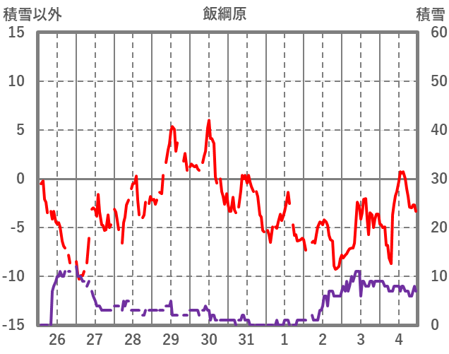 | 日 | 時 | 気温 | 降水 | 風向/風速 | 日照 | 積雪 | 降雪 |