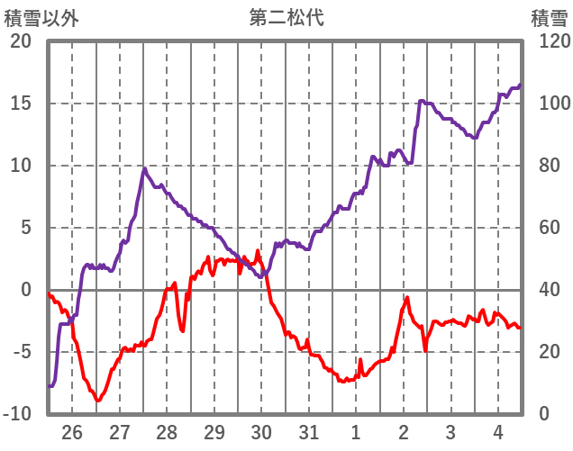 | 日 | 時 | 気温 | 降水 | 風向/風速 | 日照 | 積雪 | 降雪 |