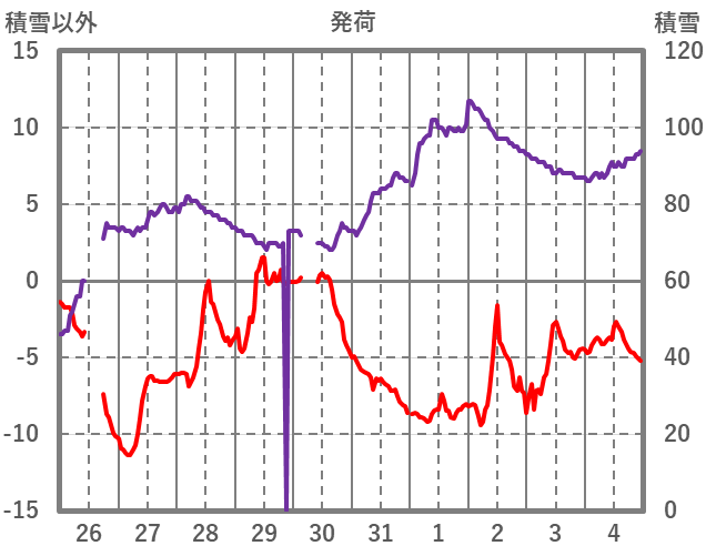 | 日 | 時 | 気温 | 降水 | 風向/風速 | 日照 | 積雪 | 降雪 |