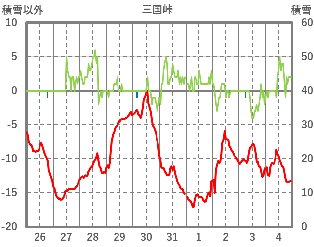 | 日 | 時 | 気温 | 降水 | 風向/風速 | 日照 | 積雪 | 降雪 |