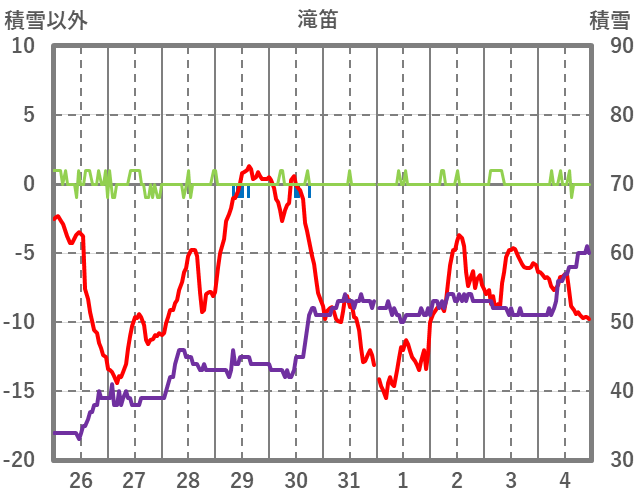 | 日 | 時 | 気温 | 降水 | 風向/風速 | 日照 | 積雪 | 降雪 |