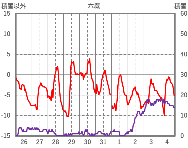 | 日 | 時 | 気温 | 降水 | 風向/風速 | 日照 | 積雪 | 降雪 |
