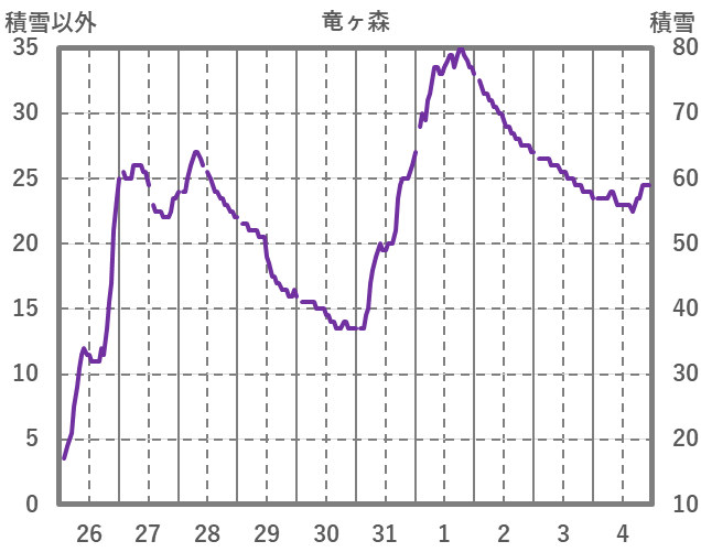 | 日 | 時 | 気温 | 降水 | 風向/風速 | 日照 | 積雪 | 降雪 |