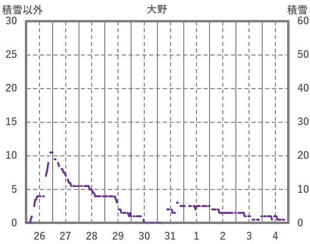 | 日 | 時 | 気温 | 降水 | 風向/風速 | 日照 | 積雪 | 降雪 |