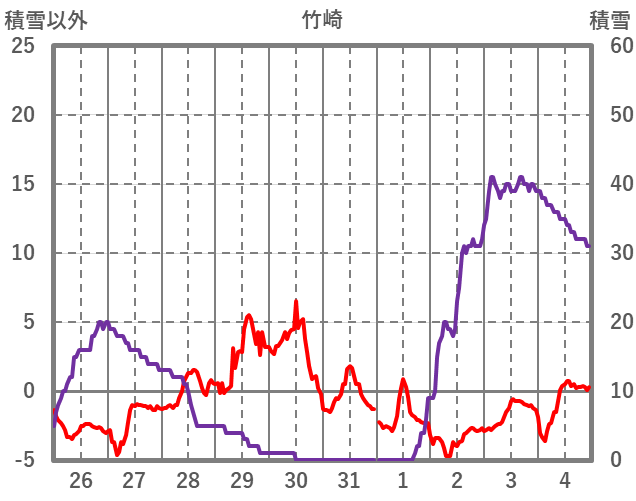 | 日 | 時 | 気温 | 降水 | 風向/風速 | 日照 | 積雪 | 降雪 |