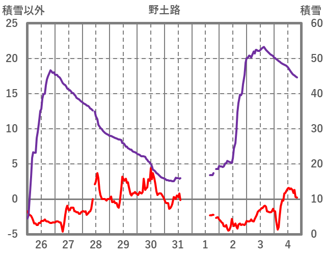 | 日 | 時 | 気温 | 降水 | 風向/風速 | 日照 | 積雪 | 降雪 |