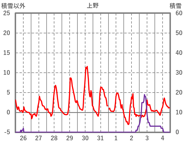 | 日 | 時 | 気温 | 降水 | 風向/風速 | 日照 | 積雪 | 降雪 |