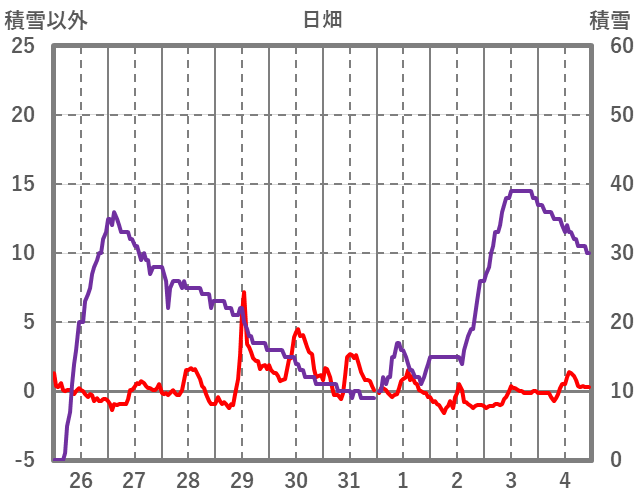 | 日 | 時 | 気温 | 降水 | 風向/風速 | 日照 | 積雪 | 降雪 |