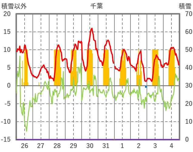 | 日 | 時 | 気温 | 降水 | 風向/風速 | 日照 | 積雪 | 降雪 |