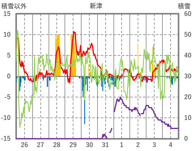 | 日 | 時 | 気温 | 降水 | 風向/風速 | 日照 | 積雪 | 降雪 |