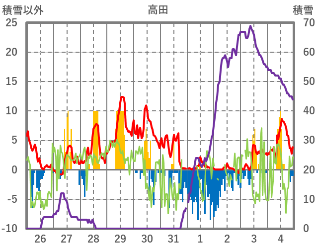 | 日 | 時 | 気温 | 降水 | 風向/風速 | 日照 | 積雪 | 降雪 |