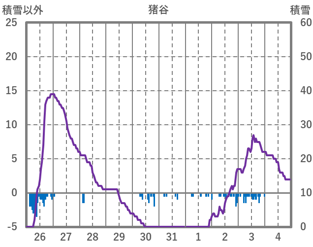| 日 | 時 | 気温 | 降水 | 風向/風速 | 日照 | 積雪 | 降雪 |