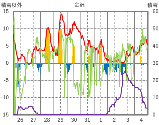 | 日 | 時 | 気温 | 降水 | 風向/風速 | 日照 | 積雪 | 降雪 |