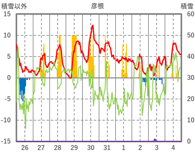 | 日 | 時 | 気温 | 降水 | 風向/風速 | 日照 | 積雪 | 降雪 |