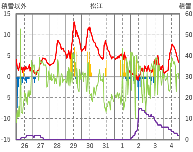 | 日 | 時 | 気温 | 降水 | 風向/風速 | 日照 | 積雪 | 降雪 |