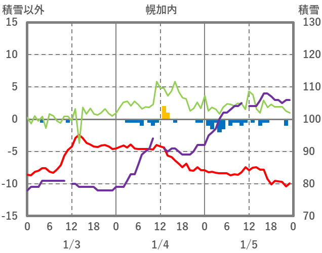 | 日 | 時 | 気温 | 降水 | 風向/風速 | 日照 | 積雪 | 降雪 |