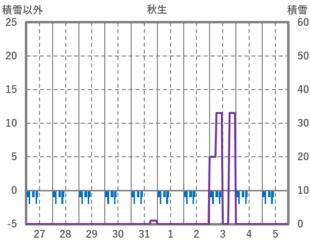 | 日 | 時 | 気温 | 降水 | 風向/風速 | 日照 | 積雪 | 降雪 |