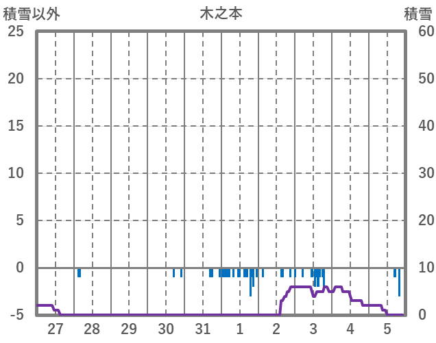 | 日 | 時 | 気温 | 降水 | 風向/風速 | 日照 | 積雪 | 降雪 |