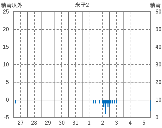 | 日 | 時 | 気温 | 降水 | 風向/風速 | 日照 | 積雪 | 降雪 |