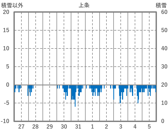 | 日 | 時 | 気温 | 降水 | 風向/風速 | 日照 | 積雪 | 降雪 |
