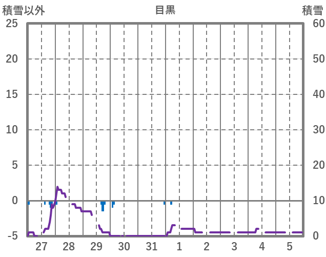 | 日 | 時 | 気温 | 降水 | 風向/風速 | 日照 | 積雪 | 降雪 |