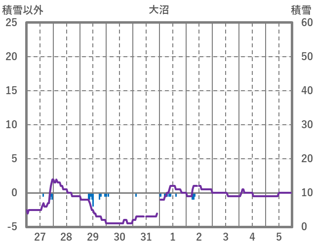 | 日 | 時 | 気温 | 降水 | 風向/風速 | 日照 | 積雪 | 降雪 |