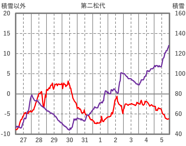 | 日 | 時 | 気温 | 降水 | 風向/風速 | 日照 | 積雪 | 降雪 |