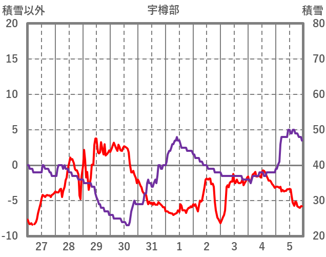 | 日 | 時 | 気温 | 降水 | 風向/風速 | 日照 | 積雪 | 降雪 |