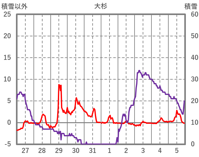 | 日 | 時 | 気温 | 降水 | 風向/風速 | 日照 | 積雪 | 降雪 |
