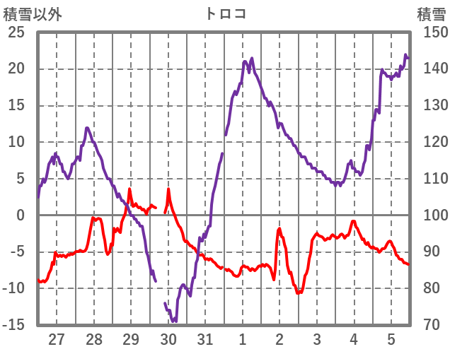 | 日 | 時 | 気温 | 降水 | 風向/風速 | 日照 | 積雪 | 降雪 |