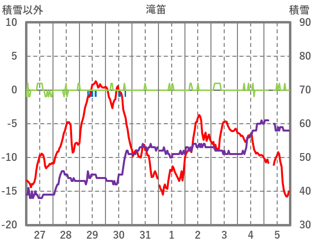 | 日 | 時 | 気温 | 降水 | 風向/風速 | 日照 | 積雪 | 降雪 |