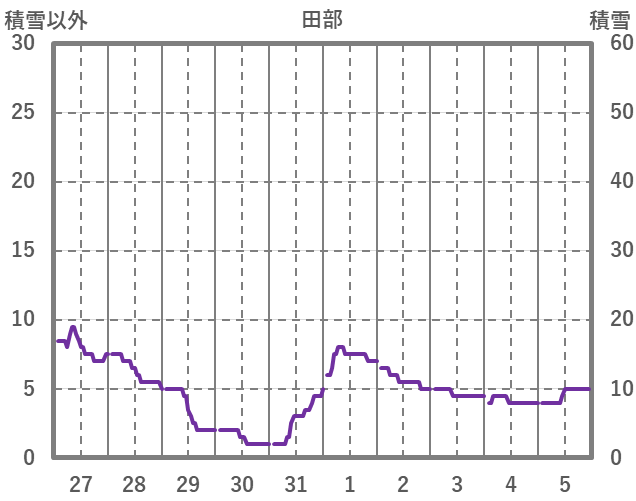 | 日 | 時 | 気温 | 降水 | 風向/風速 | 日照 | 積雪 | 降雪 |