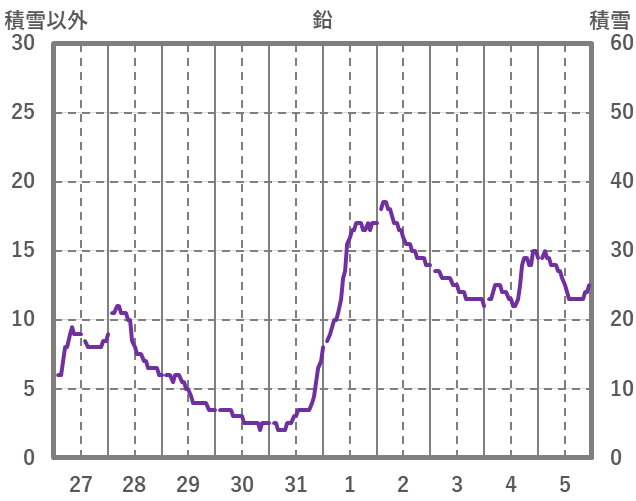 | 日 | 時 | 気温 | 降水 | 風向/風速 | 日照 | 積雪 | 降雪 |