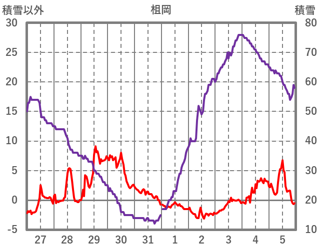 | 日 | 時 | 気温 | 降水 | 風向/風速 | 日照 | 積雪 | 降雪 |