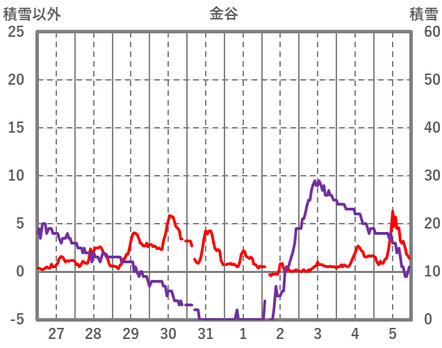 | 日 | 時 | 気温 | 降水 | 風向/風速 | 日照 | 積雪 | 降雪 |