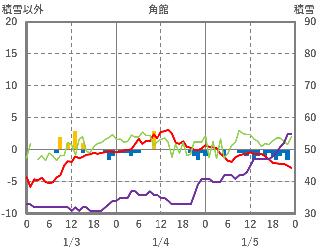 | 日 | 時 | 気温 | 降水 | 風向/風速 | 日照 | 積雪 | 降雪 |