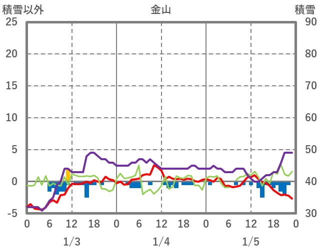 | 日 | 時 | 気温 | 降水 | 風向/風速 | 日照 | 積雪 | 降雪 |